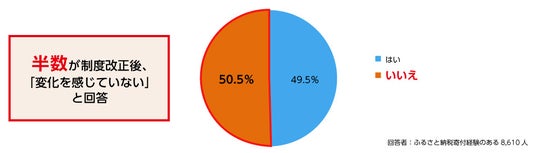 1.制度改正後、半数が「変化を感じていない」と回答。ふるさと納税への利用意向や寄付先の選び方も「変わらない」が8割以上(Q1~Q4)