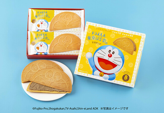 ●『ドラえもん 東京ばな奈』の第2弾、ドラえもんのお面みたいにビッグな半月サンドも登場