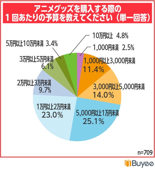 アニメグッズの購入予算は「5000円以上1万円未満」が最も多く25.1%、使い方では「予算を気にしない」層が32.9%存在