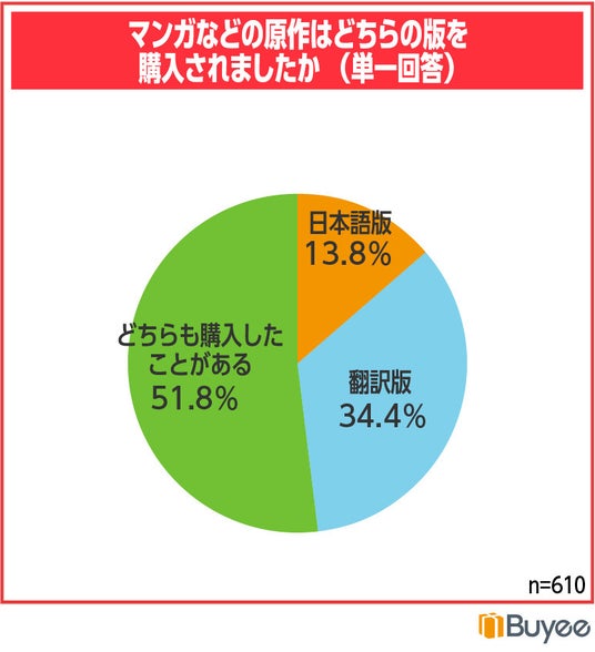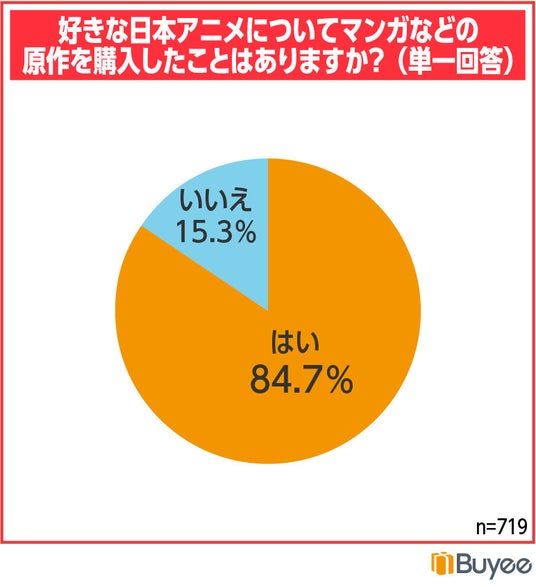 好きなアニメのマンガなどの原作を購入したことのある割合は84.7%、そのうち51.8%は「日本語版」と「翻訳版」の両方を購入