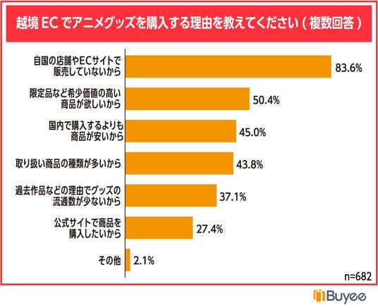 越境ECでアニメグッズを購入する理由は「自国の店舗やECサイトで販売していないから」が最も多く83.6%
