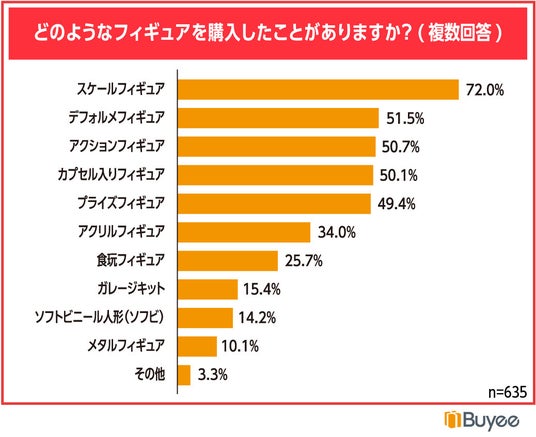 フィギュアでは「スケールフィギュア」の人気が最も高く72.0%、上級者向けの「ガレージキット」も15.4%が購入経験あり