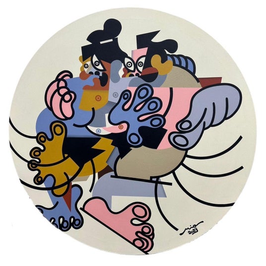 岡崎実央は、プロレスをモチーフとした作品を多く制作。武蔵野美術大学在学中より創作活動を始め、2019年より約2年間ベースボールマガジン社編集局第二編集部、週刊プロレス編集部に在籍していた。現在は、リングの周りを囲む観客それぞれから見たプロレスというエンターテインメントをピカソやブラックが発展させたキュビズム(様々な角度から見た対象の形を一つの画面に収める技法)で表現している。