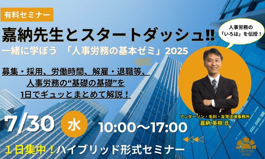 人事・法務ご担当者向けの1日セミナー。最低限押さえておきたい基礎事項について、弁護士との壁打ち感覚で考え、学べる、他にはないセミナーです。