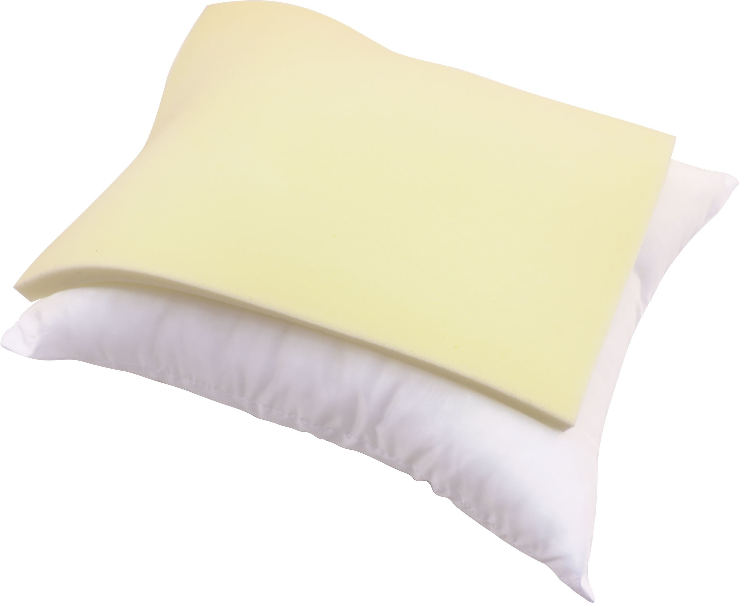特殊原材料配合の「生ウレタン」(厚さ約2cm)と、通常の枕の約1.2倍量にあたる500gの中わたを使用しています。やわらかいけれど適度な弾力のある枕です。