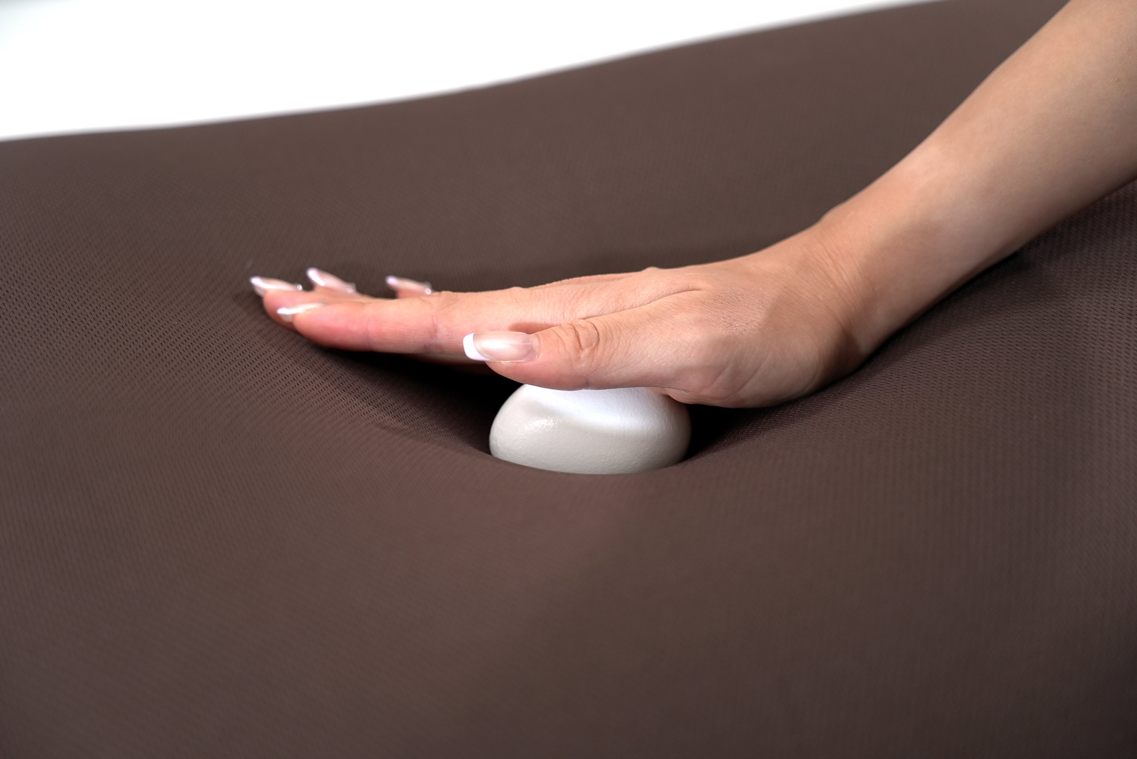 やわらかいのに高密度・高反発な「生ウレタン」とたっぷりの中わたを使うことで、究極の体圧分散を実現しました。生卵を押し当てても割れません。