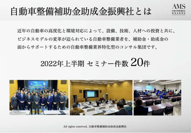 近年の自動車の高度化と環境対応によって、設備、技術、人材への投資と共に、ビジネスモデルの変革が迫られている自動車整備業者を、補助金・助成金の面からサポートするための自動車整備業界特化型のコンサル集団です。