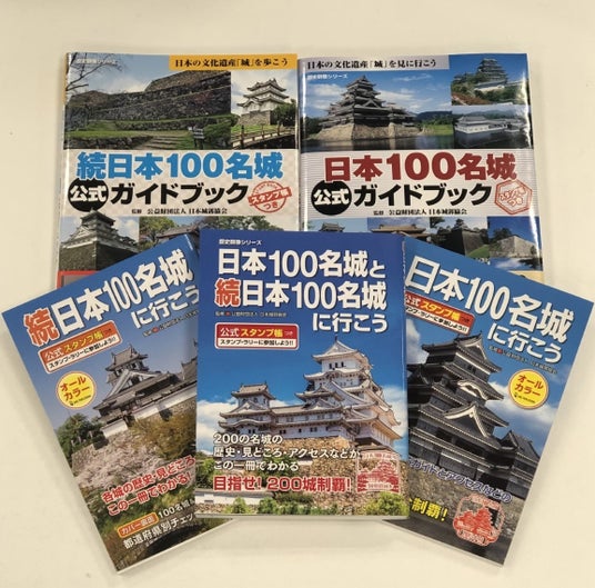 「日本100名城」と「続日本100名城」が各B5判とA5判である他に、A5判の200城合本タイプもある。