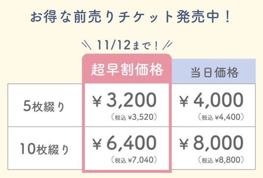 2024年11月12日(火)までの期間限定で、お得な前売りチケットを販売します。