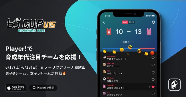 スポーツスタートアップ企業 ookami はスポーツエンターテイメントアプリ「Player!」において、一般社団法人ジャパンバスケットボールアカデミーが2023年6月17日~18日まで和歌山県で主催する2023 bjカップ U15 in WAKAYAMA において日程表やリーグ戦などのPlayer!独自のウィジェットを活用したデジタル連携を行います。