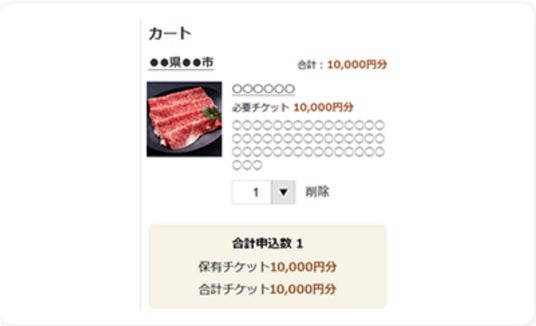 STEP2:寄付してお礼品交換チケットを取得する自治体を選んだら、「寄付してチケットを取得」ボタンを押下します。寄付する金額の「お礼品交換チケット」を選択したら、決済を行います。