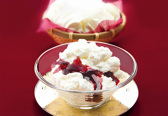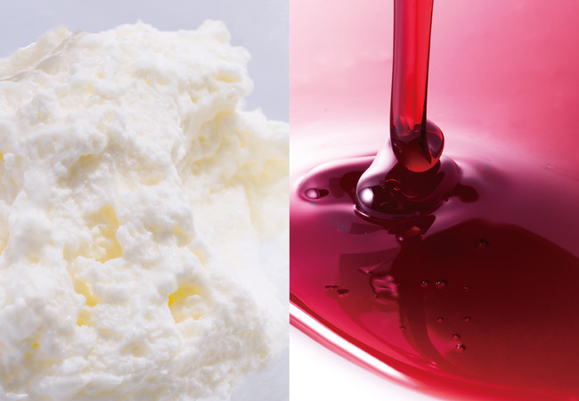 ● さっぱりふわふわのチーズ と “巨峰×赤ワイン”ソース が奏でる、"おとなの贅沢 白らら"