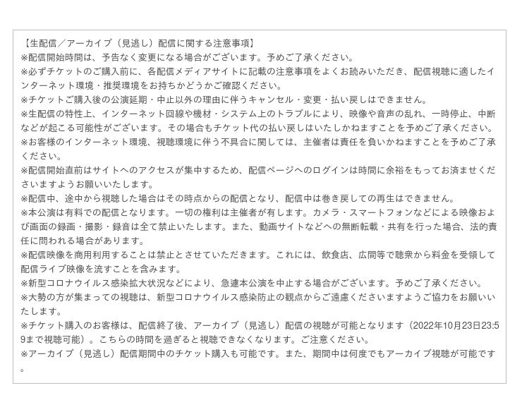 各公演 ライブ配信終了後準備整い次第開始 ~2022年10月23日23:59