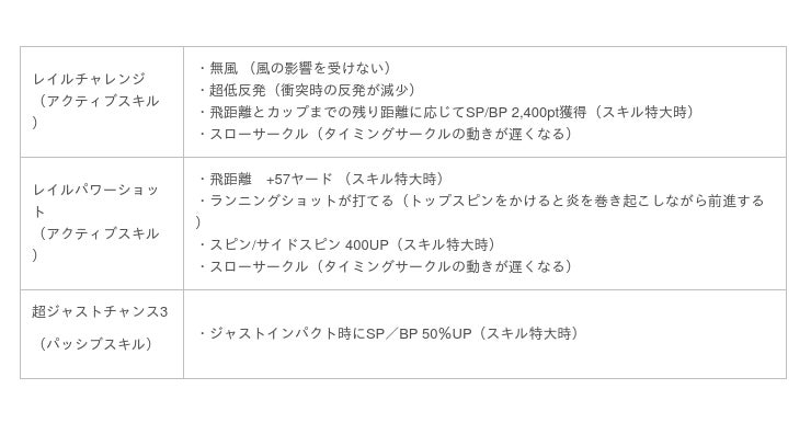 ・「スリングPレイルギア」(クラブ/ボール)搭載スキル: