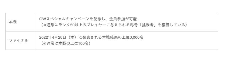 開催期間:2022年4月20日(水)メンテナンス終了後~2022年5月12日(木)11:59