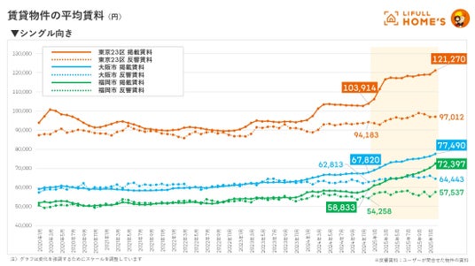 LIFULL HOME'Sマーケットレポート2025年総括版 賃貸シングル向き(東京23区・大阪市・福岡市)