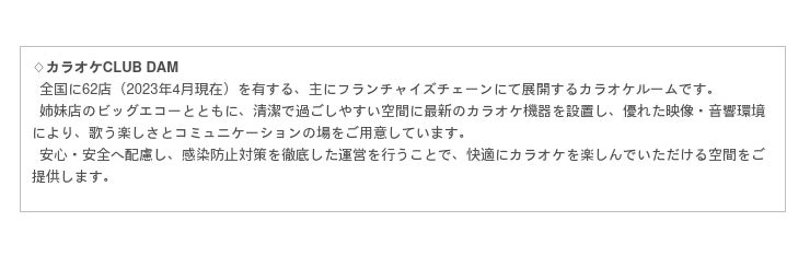 株式会社第一興商は、カラオケルーム ビッグエコー三鷹中央通り店を、カラオケCLUB DAM 三鷹中央通り店として、2023年4月3日にグランドオープンします。