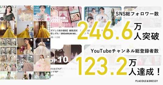 「PLACOLE & DRESSY」ブランドを展開する、冒険社プラコレ(本社:神奈川県鎌倉市、代表取締役CEO:武藤功樹)は、総フォロワー数246.6万人を突破、運営するYouTubeチャンネル総登録者数 123.2万人達成したことをお知らせいたします。