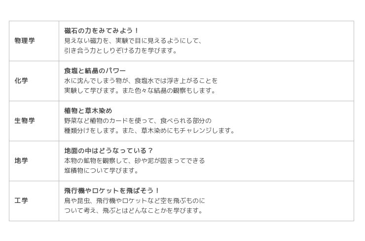 「サイエンスゲーツ~かがくのもん~」は、物理学、化学、生物学、地学、工学などの分野を身近にある物事をテーマに幅広く体験することで、科学分野を好きになると同時に、子どもたちの主体性と独自の創造性を養うことを目的としています。