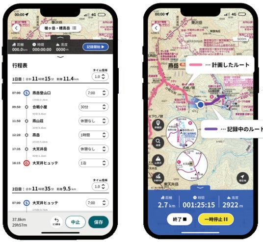 登山計画を地図と行程双方を見ながら組み立てていけるインターフェースへと変更いたしました。また、地図についても各機能ボタンの配置調整等の改善をおこなうとともに、作成した計画を表示しながら登山のログを記録・確認することが可能になりました。※2