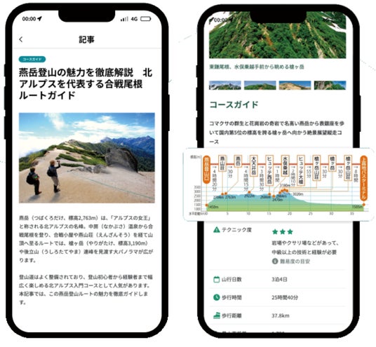 「山と高原地図Web」で公開している登山ノウハウ等の記事コンテンツやおすすめの登山コースの情報をアプリ内で閲覧できるようになりました。※2