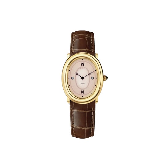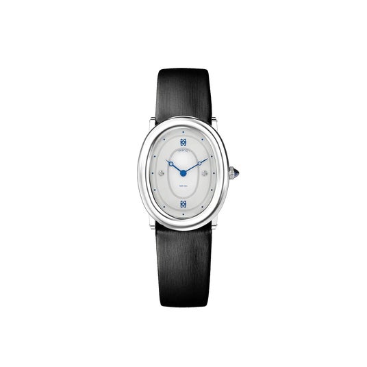 Oval Collectionは、ヴィンテージウォッチに見られる楕円形ケースを採用したモデルです。直線的な要素を抑えた丸みのあるケースラインにより、全体にやわらかい印象を与えます。縦方向に伸びる楕円形のシルエットが手首をすっきりと見せ、ダイヤモンドをあしらったモデルでありながら、日常使いにも取り入れやすいデザインに仕上げられています。