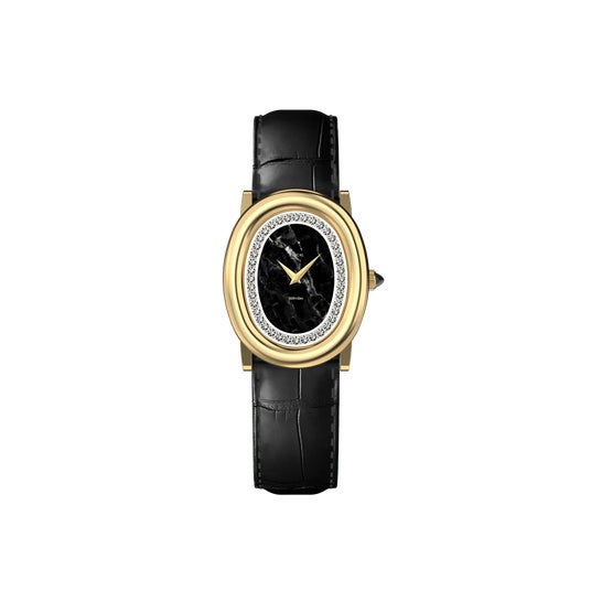 「Oval Bubble」シリーズをベースに、ベゼルへ40石・合計0.4カラットのラボグロウンダイヤモンドをセットしたモデル。ブラックのマーブル調文字盤と組み合わせることで、落ち着いた印象の中に華やかさを加えています。