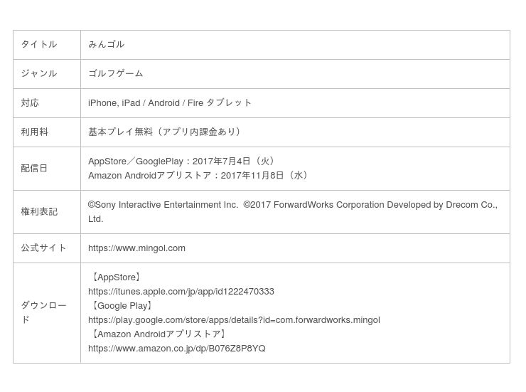 『みんゴル』は、「プレイステーション」を代表する作品のひとつでありシリーズ全世界累計実売1,400万本(※2)を達成した「みんなのGOLF」シリーズのスマホ向けゴルフゲームです。引き続き、『みんゴル』に関する情報は、公式サイトやSNSなどでもお届けしてまいります。