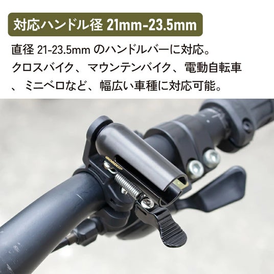 適合ハンドルの確認:本製品は、ハンドルのパイプ径がφ21mm~23.5mmの自転車のハンドルに対応しています。 お手持ちの自転車のハンドル径を必ずご確認ください。