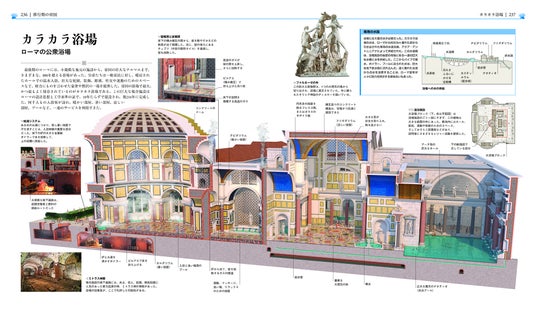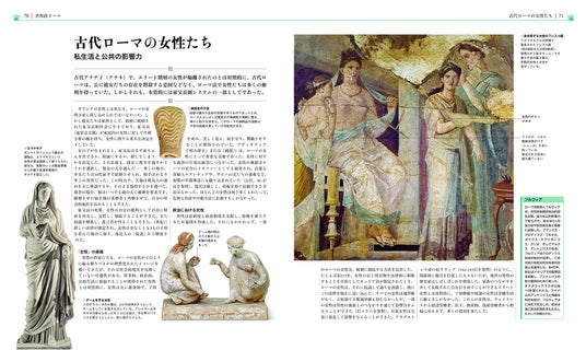また、現在に残る多くの絵画、彫刻、遺構などの約850点もの選ばれた図版も掲載。これに地図も配した圧倒的なビジュアル効果で、古代ローマ世界とその住民の建築、工学、芸術的効果、日常生活について、読者の新しい理解を助けます。