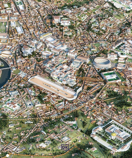 監修者の一人マシュー・ニコルズ教授が開発した3Dデジタル技術によって、古代の文献と地図、考古学、碑文、コインの画像を含む文書及び視覚資料から、今ではもう失われて久しい古代ローマの都市や複数の象徴的な建物を生き生きと再現しています。
