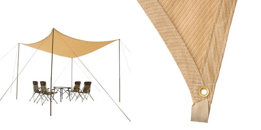 本アイテムは、木かげメッシュを採用した、フィールドに馴染むナチュラルカラーのタープとサイドウォールです。木かげメッシュは耐光性に優れた生地で、日差しをやわらげながらも風を通すので、まるで木かげにいるような空間で快適に過ごすことができます。