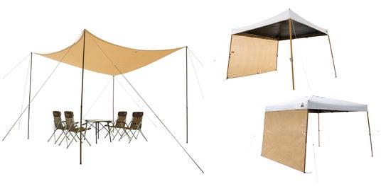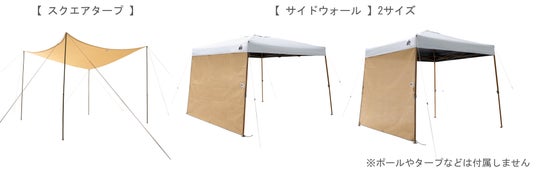 フレキシブルな張り方を楽しめ、マルチに使えるスクエアタープと、別売りのQセットタープシリーズに対応し、取り付けや調節が簡単なサイドウォール2サイズをラインアップします。