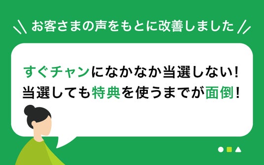 お客さまより、「すぐチャンの抽選がなかなか当選しない。また、当選してVポイントPayギフトをもらっても、VポイントPayアプリへチャージしなくてはいけないから面倒。」というお声が寄せられておりました。