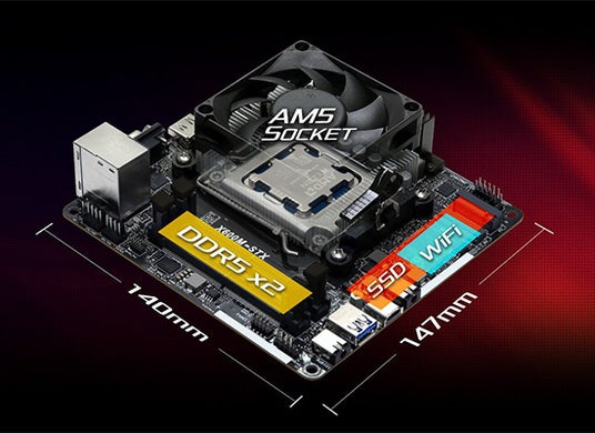 『DESKMINI X600/B/BB/BOX/JP』は、155x155x80mmの超小型ながら、Socke AM5 Ryzen 8000/7000シリーズプロセッサーに対応したパワフルなベアボーンです。