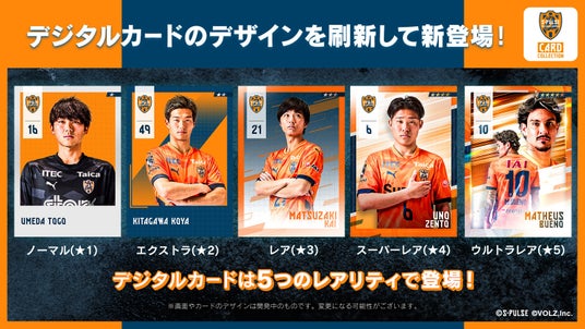 今シーズンは、特別大会「明治安田J1百年構想リーグ」の開催を経て「2026-2027シーズン」へと向かう、Jリーグにとっても節目となる特別なシーズンです。 この熱気を表現するため、カードデザインを新シーズンに合わせてフルリニューアルいたしました。選手の白熱したプレーシーンをよりダイナミックに表現しています。また、今シーズン限定の特別仕様カードも順次追加予定です。
