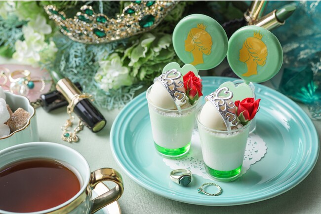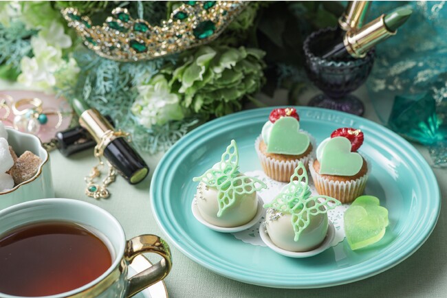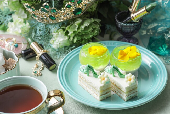 春の新緑シーズンのアフタヌーンティーは、“幸福”の意味を持つエメラルドグリーンをテーマに、プリンセスモチーフのスイーツをご用意。スイーツにあわせたドリンクは、紅茶やコーヒー等約15種類のフリーフローをご用意しており、フランスの老舗紅茶ブランド・マリアージュ フレール社の紅茶やフレーバードティーもお好きなだけご堪能いただけます。