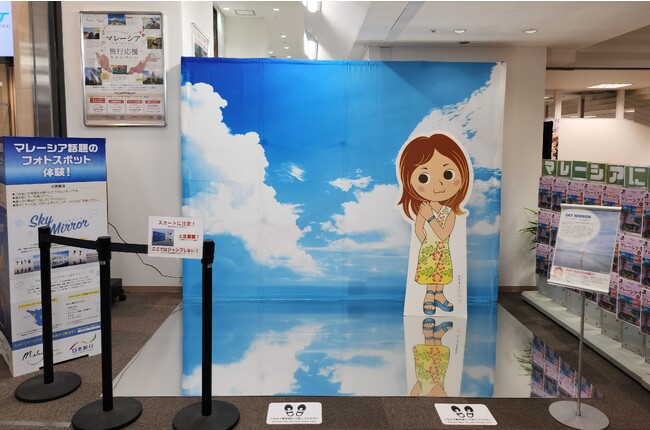 首都クアラルンプールから約2時間で行ける「天空の鏡スカイミラー」は、海の真ん中に干潮時のみ出現し、海面に鏡のように空を映し出す天空シンメトリーな写真が撮影できる新しいSNS映えスポットとして注目されています。JR大阪駅構内にあるTiS大阪支店では、店舗入口にスカイミラーが体験できるフォトスポットを設置しています。