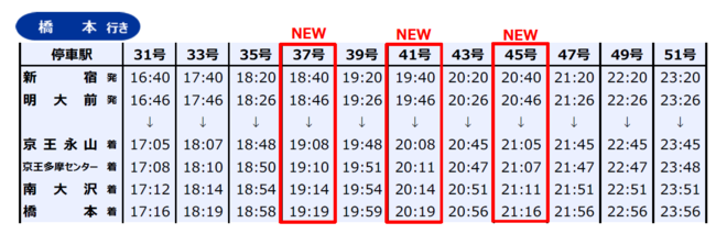 夕方の早い時間帯に京王八王子行き、橋本行きのを1本ずつ増発します。