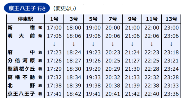 今後京王ホームページ等に掲載予定の時刻表をご確認ください