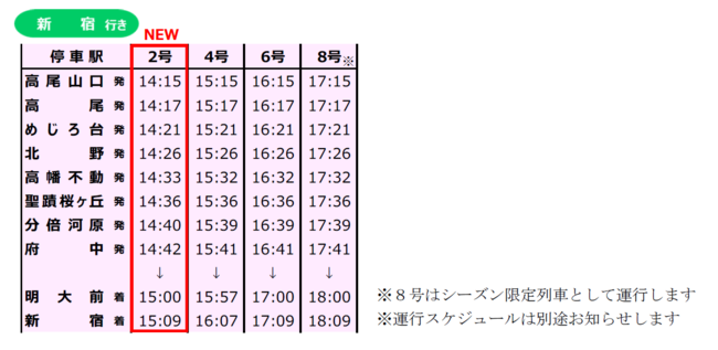 ※京王ライナーの時刻および通常列車の運行間隔、運行本数は、現時点でのものであり