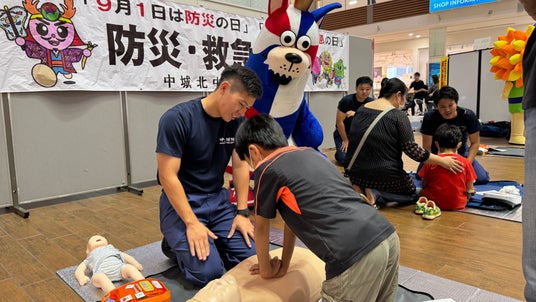 9月8日(日)にイオンモール沖縄ライカムにて開催された、中城北中城消防本部主催の「防災・救急フェア」にゴーディーが参加しました。