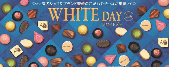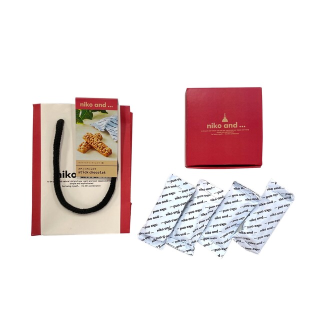 「niko and ...」でプロデュースしたホワイトデーギフト6種類は、カジュアルな温かみのあるカラーに「niko and ...」のロゴが映え、男女問わず貰って嬉しいギフトボックスを展開します。ショッピングバッグはバイカラーデザインがオシャレで、アフターユースにも最適です。チョコレートもショコラやクッキーなど、様々な組み合わせでお楽しみいただくことが出来ます。身近な人や大好きな人に贈りたくなる、とっておきのギフトに仕上がりました。是非ご賞味下さい。