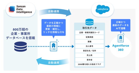 本連携により、Salesforce上に登録された取引先データを正確かつ最新の状態に保つことができ、Salesforceが提供する自律型AIエージェント基盤「Agentforce 360」などを活用した、より高度なデータ活用も可能になります。なお、今回の連携開始に伴い、Sansan Data Intelligenceは、世界有数のエンタープライズクラウドマーケットプレイス「Salesforce AppExchange」への掲載も開始しました。