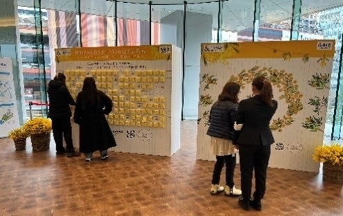 オフィスビルで働くワーカーから、自分自身や周囲の働く女性への応援メッセージを集めて、オフィスロビーに掲示しました。