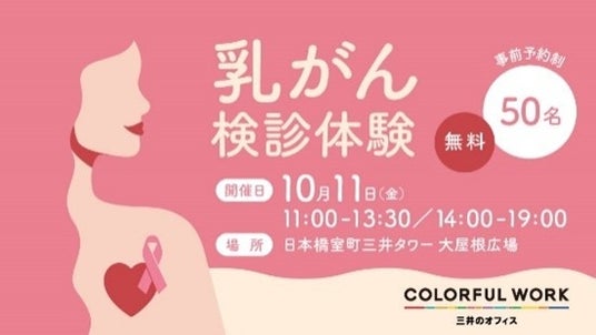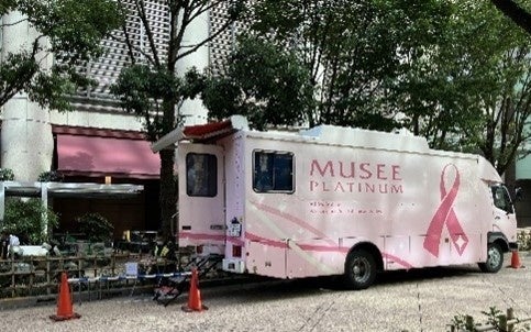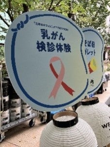 ピンクリボン月間(10月)には、乳がん啓発のため、オフィスビルの足元で乳がん検診体験イベントを実施しました。