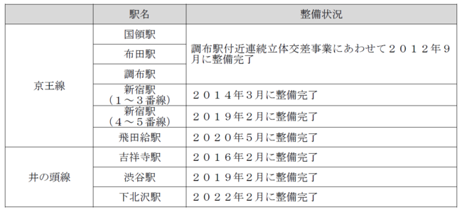 なお、今後は京王線・井の頭線全駅のホームドア設置に向けて検討を進めてまいります。