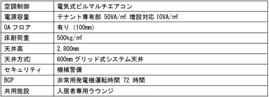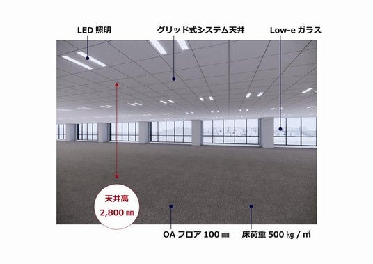 専有部天井高2,800mm、個別空調、OAフロア(100mm)等、最新のオフィススペックを備えたエリアでは希少性の高いハイグレードオフィスビルです。