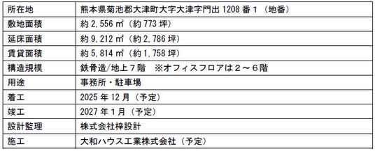 このたび、当社は熊本県菊池郡大津町にエリア最大級となる賃貸オフィスビルの開発を行うこととなりましたので、お知らせいたします。