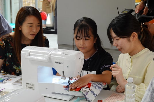 イベントでは、「"縫う"から学ぶサステナブルな未来」をテーマにした特別講義、鑑定士体験、コメ兵で買い取りをした着物の端切れを使用した巾着製作のアップサイクル体験など、子供たちが楽しみながらリユースについて学べるプログラムを実施した。参加者にはブラザーの従業員が個別で指導に付き添い、ミシンを使ったオリジナル巾着の製作に取り組んだほか、完成した巾着にはコメ兵で買い取ったジュエリーから取り出した再利用パールをチャームとして飾り付けるなど、ものづくりの楽しさやリユースの大切さを体感できる内容となった。